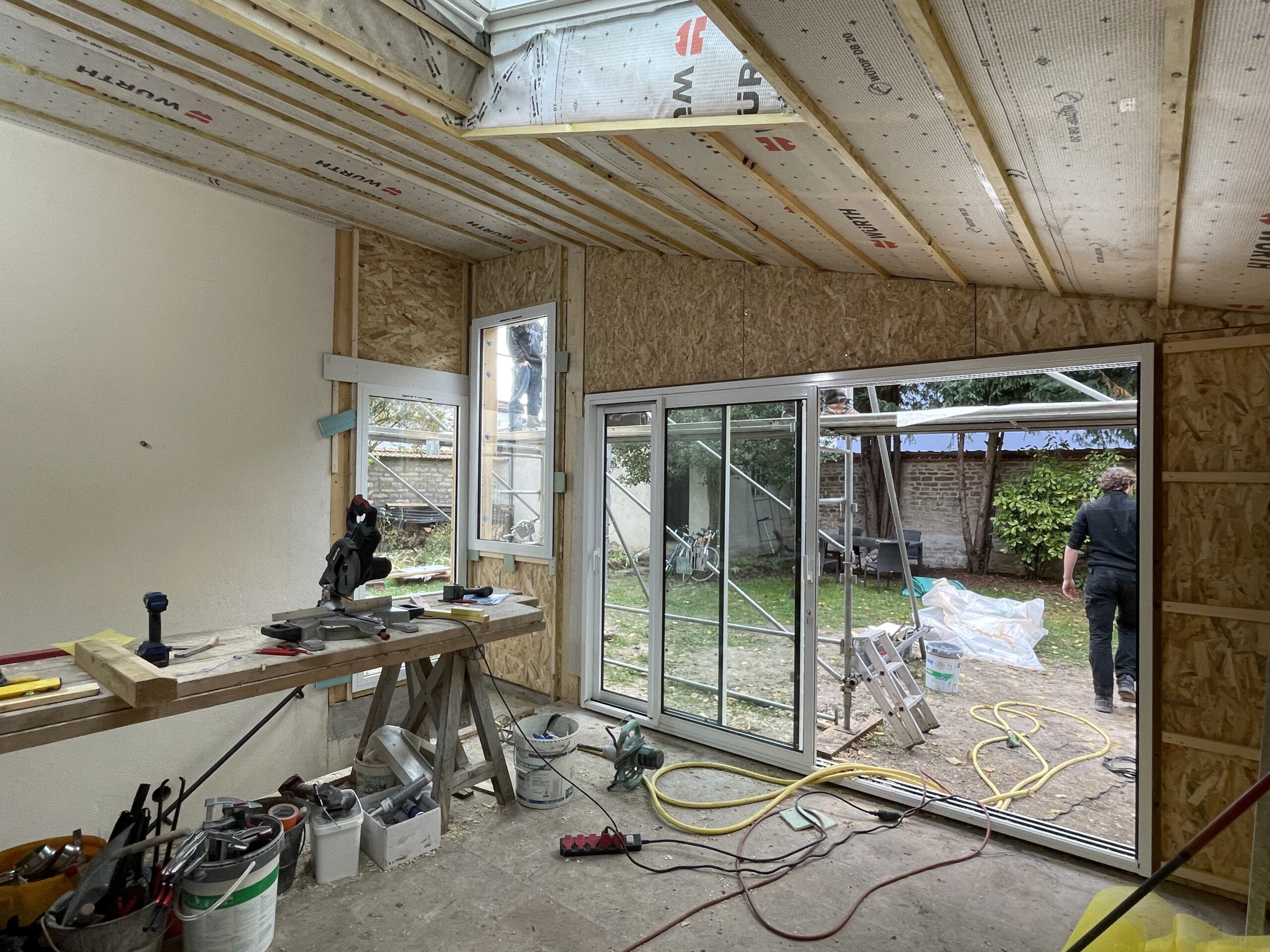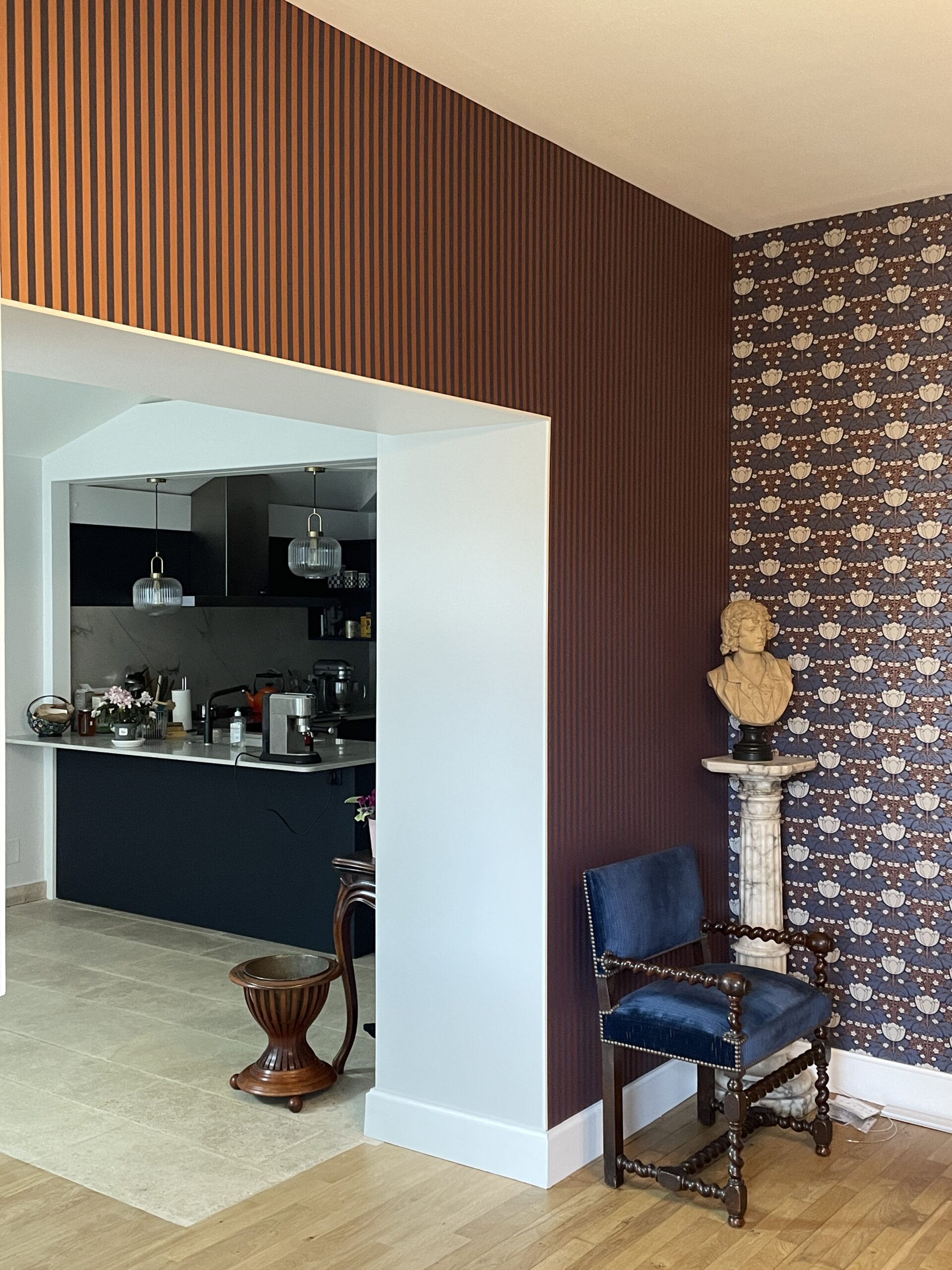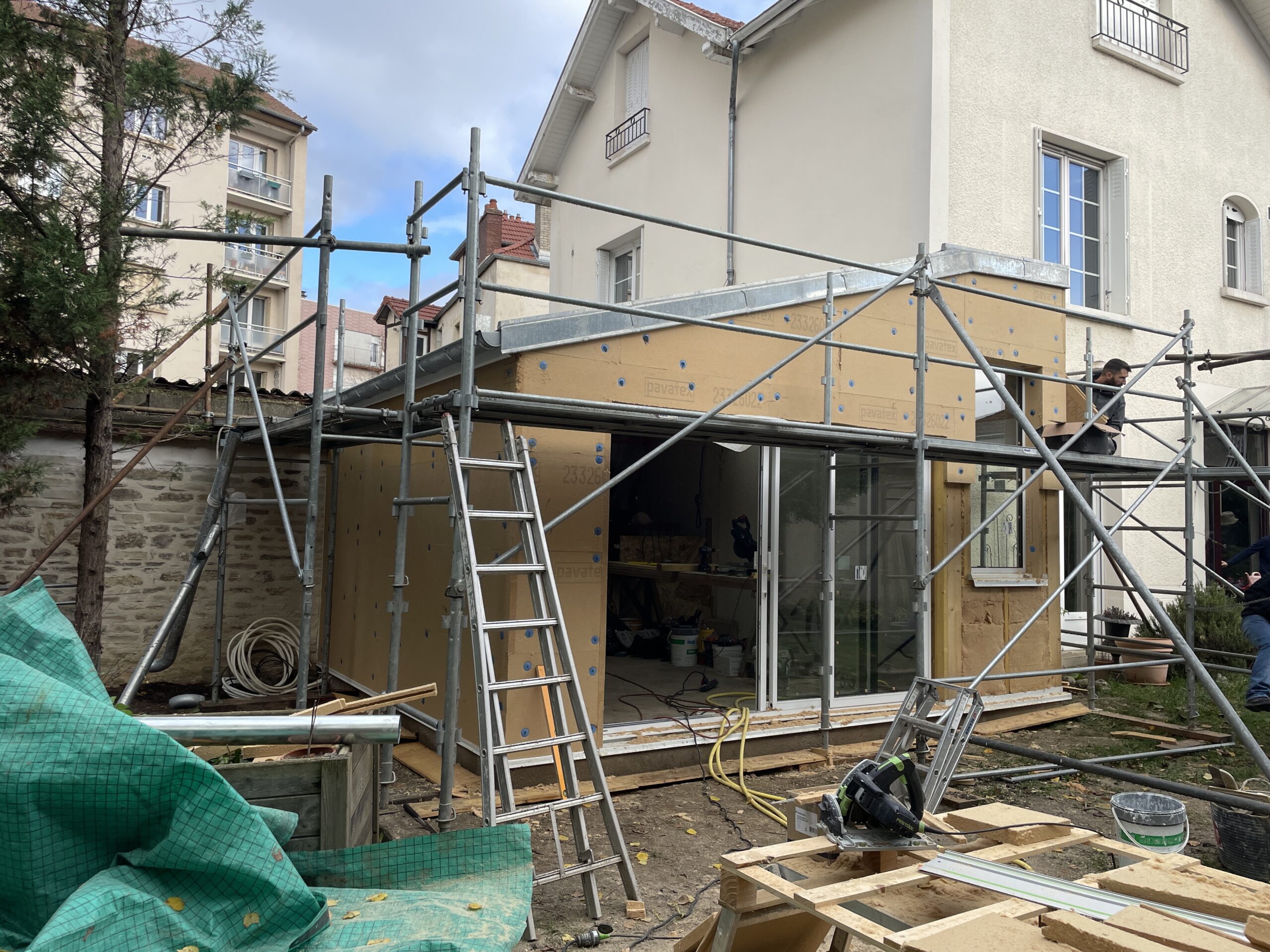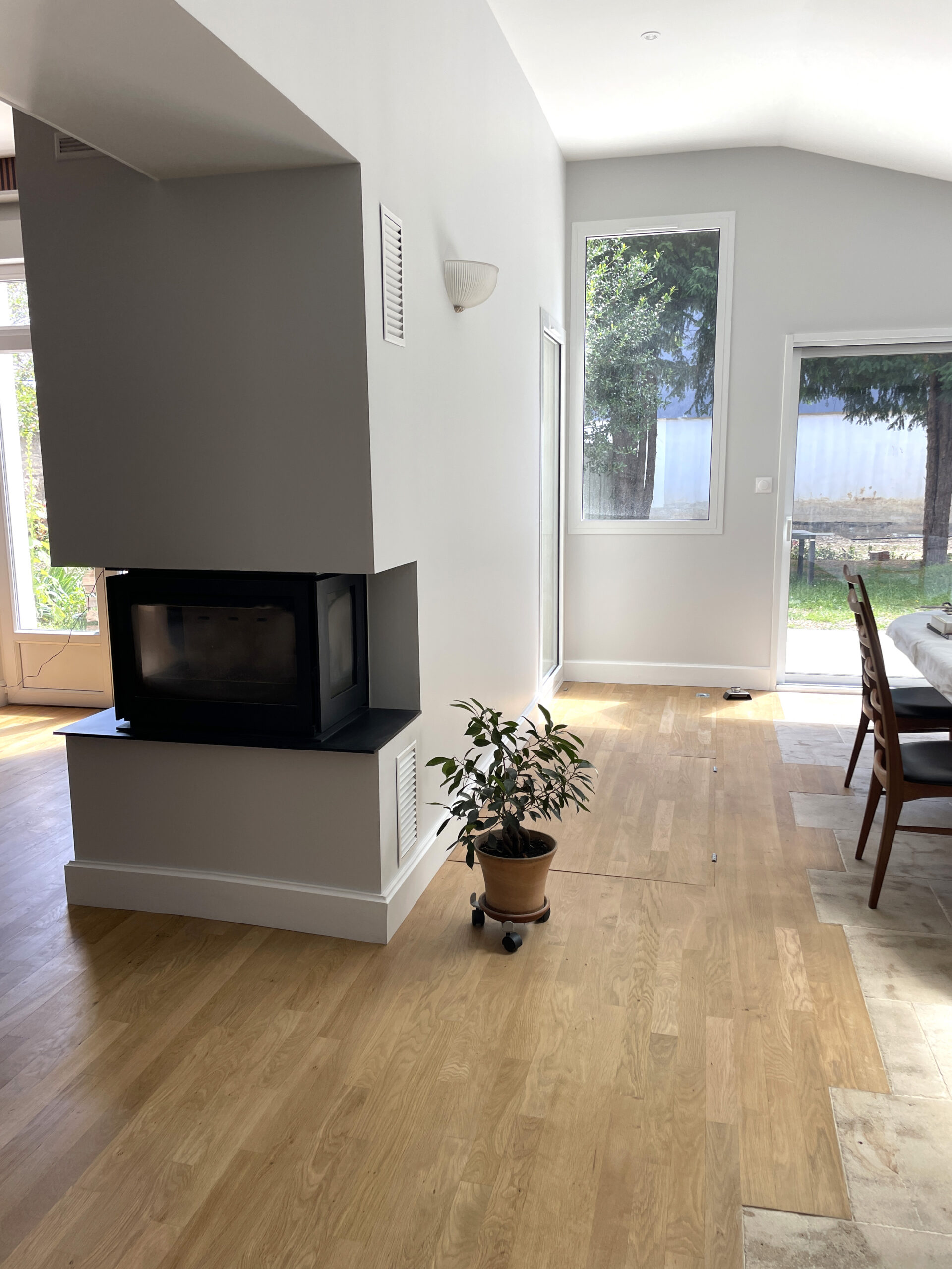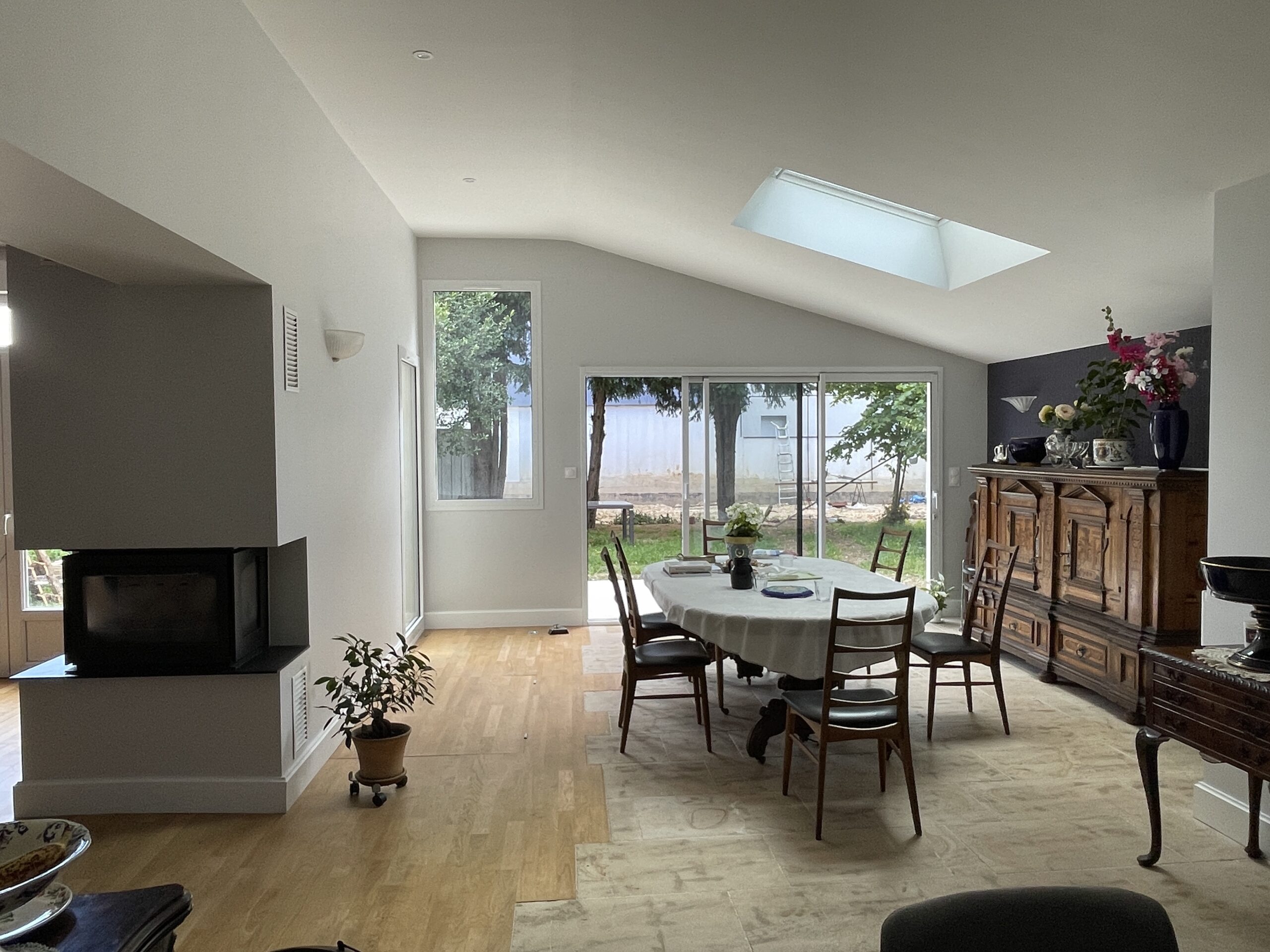 Cette maison des années 30, située en plein cœur de Dijon, a fait l’objet d’une rénovation globale visant à créer un dialogue harmonieux entre l’existant et une écriture contemporaine. Une extension en bois a été créée pour accueillir un nouveau séjour, largement ouvert sur le jardin, la piscine et les arbres anciens, offrant ainsi une continuité naturelle entre intérieur et extérieur. La cuisine a été déplacée au centre de la pièce principale et s’organise désormais autour d’un îlot central, pensé comme un véritable lieu de convivialité et de partage. L’ouverture d’un mur porteur permet une circulation fluide entre la maison d’origine et l’extension. L’ancien accès à la cave a été fermé par la mise en place d’un plancher bois sur vérins, facilitant l’usage quotidien de l’espace. Une buanderie en menuiserie sur mesure complète l’aménagement. L’ensemble du projet s’inscrit dans une recherche d’équilibre entre le caractère de l’ancien et la sobriété du moderne, pour une maison cohérente, lumineuse et tournée vers le jardin.