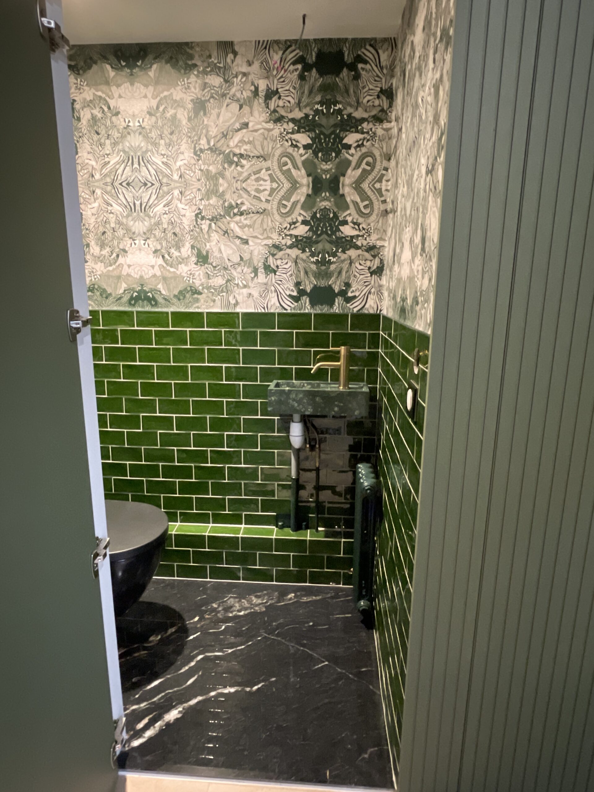Le projet s’articule autour de la requalification des espaces existants et de la création de nouveaux usages, à commencer par une entrée repensée, intégrant discrètement un WC dissimulé derrière une porte dérobée.