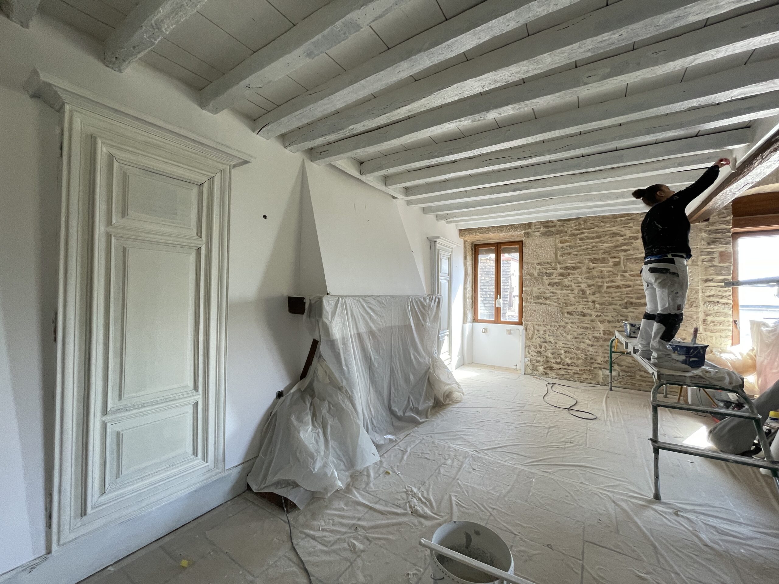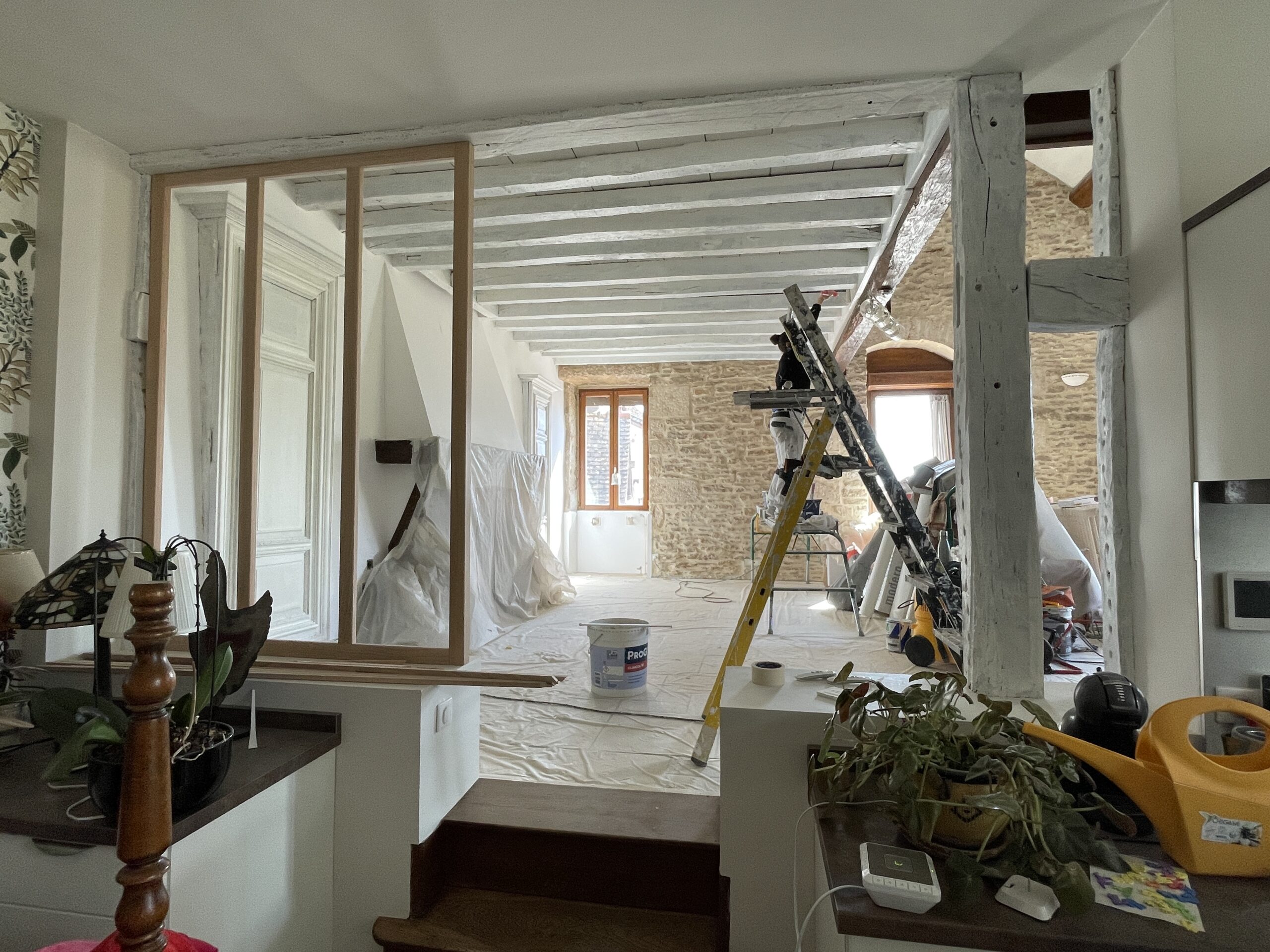 Au cœur de la Côte de Nuits, cette ancienne maison de vigneron a fait l’objet d’une rénovation complète. Autrefois très sombre, marquée par la présence de poutres foncées et de murs à la chaux aux tonalités profondes, la maison a été entièrement repensée pour révéler son potentiel. Les colombages de la cuisine ont été déposés, les peintures reprises avec soin tout en conservant un plafond classé, et la cuisine a été entièrement recréée. Les pièces racontent désormais une nouvelle histoire, portée par des tonalités douces et lumineuses. Les carreaux de ciment anciens ont été rénovés et un bureau dédié au domaine a été créé. Le choix subtil des couleurs et des matériaux insuffle à l’ensemble douceur et modernité, tout en respectant l’âme de cette maison de caractère.